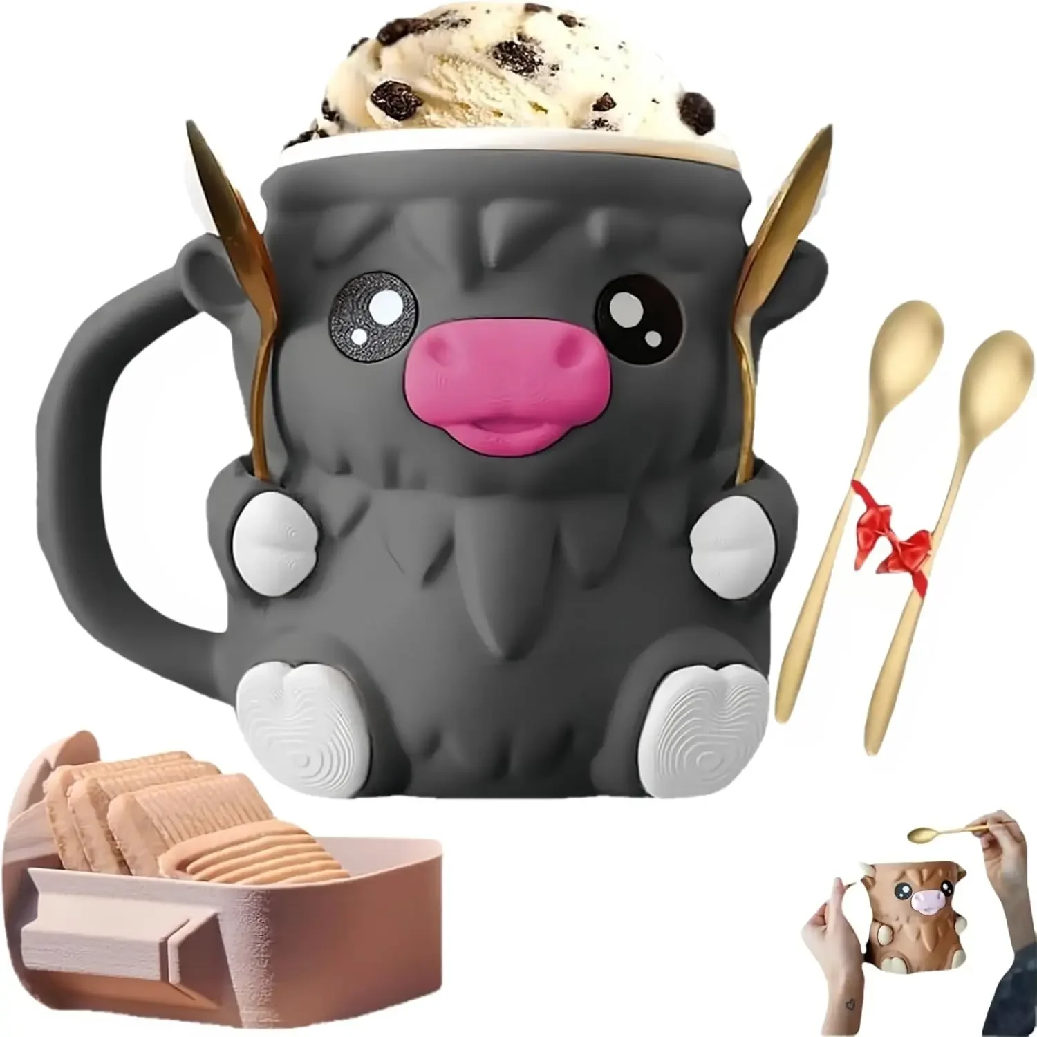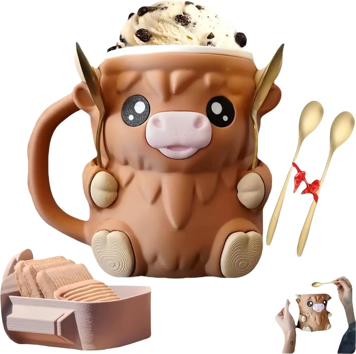 Bring a smile to every treat time with this adorable Highland Cow ice cream holder. Featuring soft, textured fur, sweet facial details, and charming horns, this whimsical design instantly adds fun to your dessert or drink experience. More than just cute—it’s a practical insulator for your favorite frozen treats and beverages.